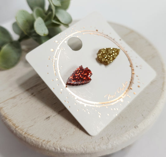 Arrowhead Red & Gold Glitter Acrylic Studs