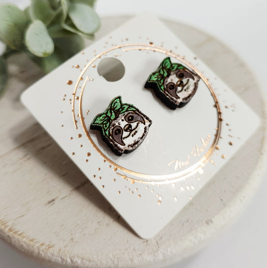 All wood studs are hand painted and sealed, hypoallergenic surgical steel posts for sensitive ears, and tarnish free. Secure large rubber backs included.